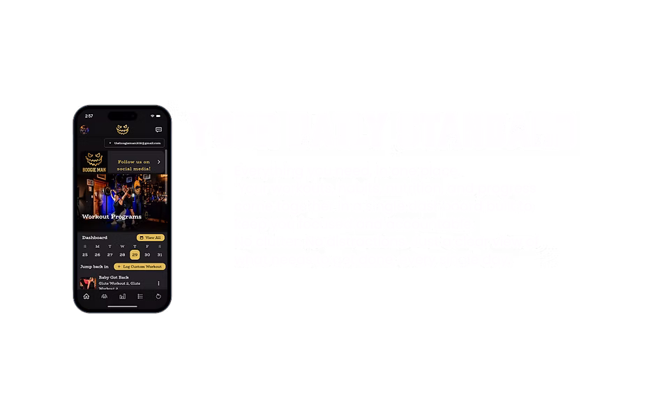 This is not random training. Every program inside the Boogie Man app is designed to build strength, discipline, and structure, physically and mentally. No matter where you start, each plan is built to push you forward, eliminate stagnation, and help you become the best version of yourself.